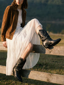 Desde el primer día, mi misión ha sido crear algo que acompañe a mujeres increíbles como tú, que caminan con propósito y no temen seguir su propio camino. Cada par de botas que diseño lleva mi corazón, mis valores y mi compromiso con la calidad, porque sé lo importante que es sentirte bien, cómoda y segura en tu piel.